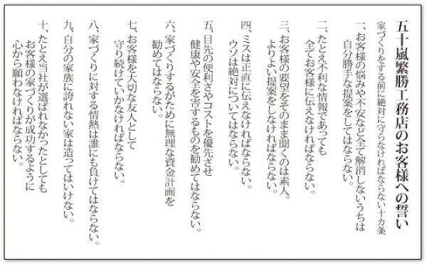 昭和43年の創業時から、孫の代まで安心・安全な家づくりをすることを信念としています。
